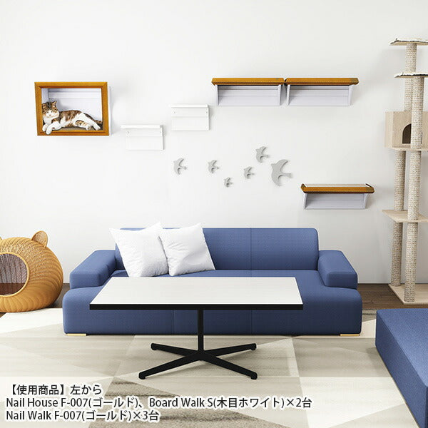 [使用商品/カラー] 上:左からNail S F-007 ホワイト、Nail Walk F-007 ゴールド×3台、Board Walk S 木目ホワイト、Nail House F-007 ホワイト